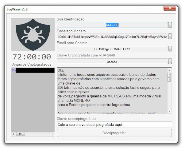Αυτός έρχεται από τη Βραζιλία, και ονομάζεται BugWare. Τοποθετεί την επέκταση .[SLAVIC@SECMAIL.PRO].BUGWARE στα κρυπτογραφημένα αρχεία.