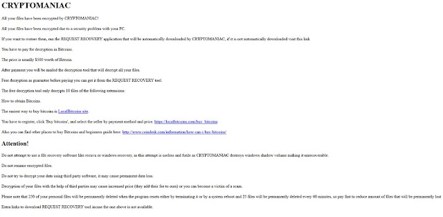 ΝΕΟΣ Ransomware: CryptoManiac