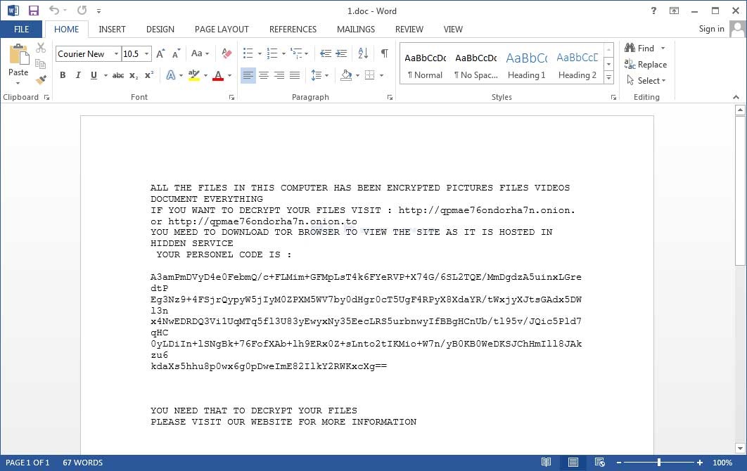 Αυτός έχει την πρωτοτυπία ότι μετά την κρυπτογράφηση (με την οποία τοποθετεί στα αρχεία την κατάληξη .enc), αντικαθιστά όλα τα αρχικά αρχεία του χρήστη με το Ransom Note. Να πούμε επίσης ότι είναι γραμμένο σε Python.
