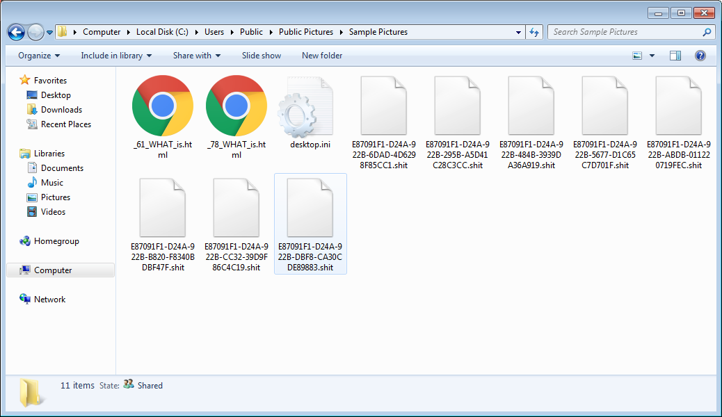 Όπως και οι προηγούμενες παραλλαγές, αυτός ο ransomware ιός εγκαθίσταται χρησιμοποιώντας ένα αρχείο .dll το οποίο εκτελείται μέσω του Rundll32.exe των Windows. Όταν εκτελεστεί, στοχεύει σε συγκεκριμένους τύπους αρχείων (ναι, μέσα σε αυτούς περιλαμβάνονται και όλοι οι γνωστότεροι) και ξεκινάει τη κρυπτογράφηση βάζοντας .shit ως κατάληξη στα κρυπτογραφημένα αρχεία.