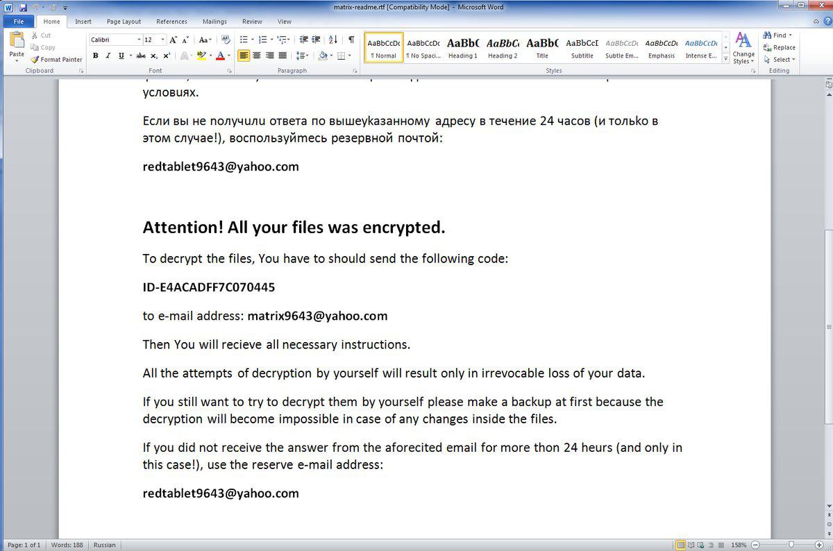 NEOΣ Ransomware: Matrix